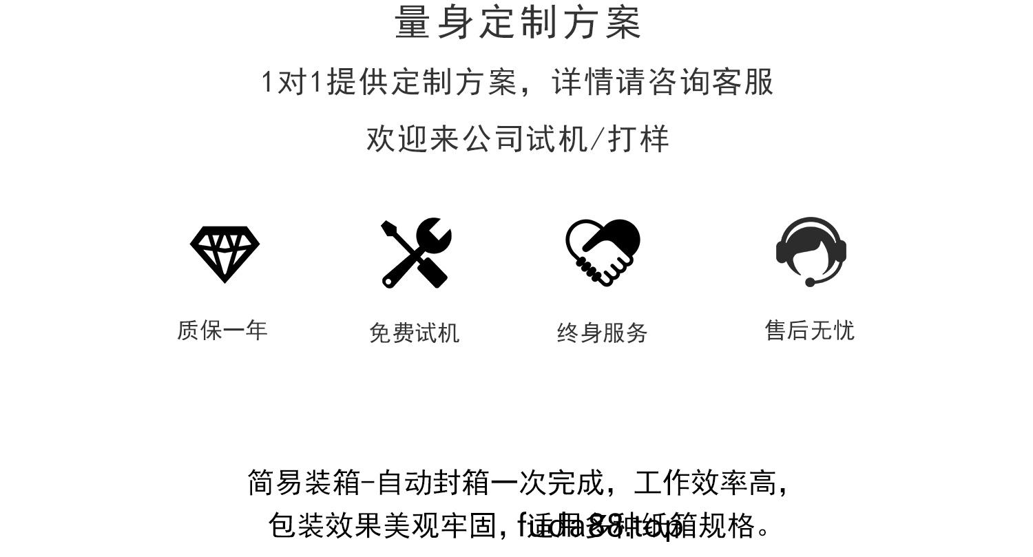 最(zui)大封(feng)箱(xiang)尺寸(cun):L∞*W500*H500mm 最(zui)小(xiao)封(feng)箱尺寸(cun):L200*W120*H120mm |