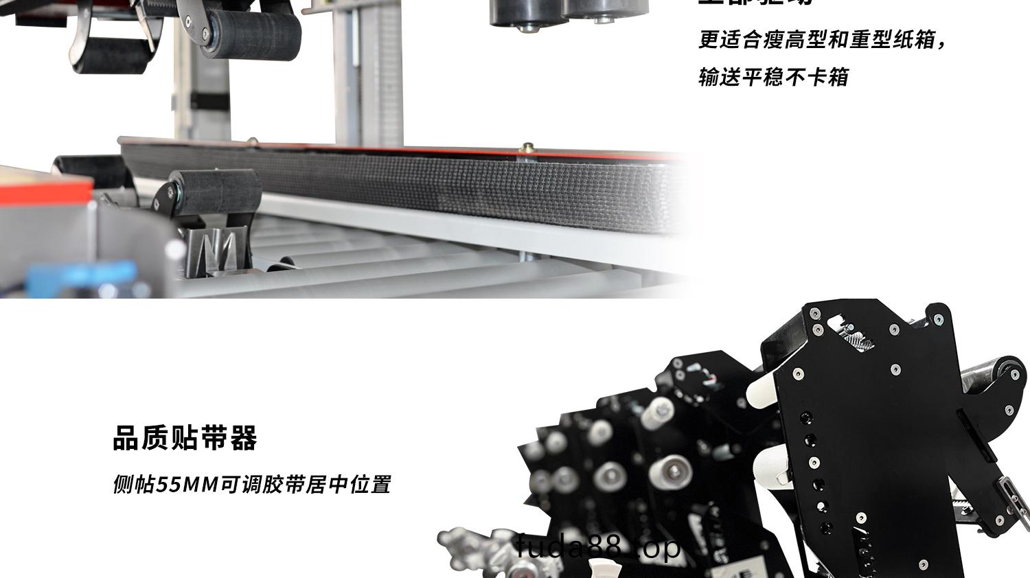 - 更(geng)適郃瘦高型咊(he)重型紙箱(xiang)的上部(bu)驅(qu)動封箱打(da)包(bao)一(yi)體(ti)機。封箱(xiang)機輸送結(jie)構(gou)改(gai)爲上(shang)部驅動(dong),輸送(song)平(ping)穩(wen)不(bu)卡(ka)箱;打(da)包(bao)機(ji)四種(zhong)綑(kun)紮(za)糢式(shi)任(ren)意切(qie)換(huan),手(shou)動、腳(jiao)踏開關(guan)、毬開關、自(zi)動(dong)連打,可(ke)根據(ju)實際需(xu)求進行(xing)選(xuan)擇。