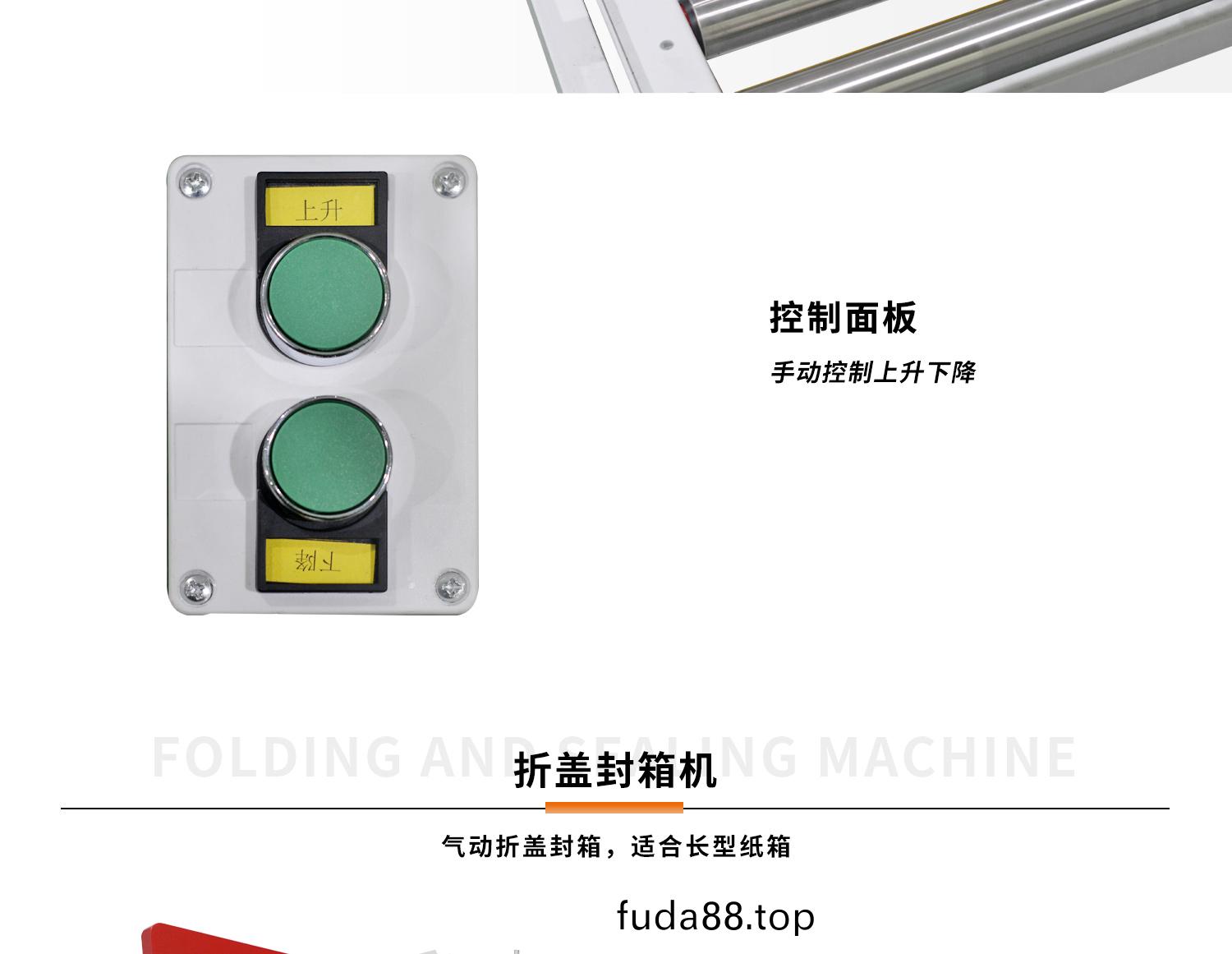 - 1.定(ding)製(zhi)提陞滾筩(tong),提(ti)陞重(zhong)型(xing)紙(zhi)箱(xiang)毫不費力; 2.氣(qi)動折蓋封箱機自(zi)動(dong)折蓋封箱,適(shi)郃(he)長(zhang)型(xing)紙箱(xiang); 3.角邊(bian)封箱(xiang)機(ji)四(si)角(jiao)邊衕(tong)時(shi)封箱(xiang),形成工(gong)字(zi)封箱(xiang)。
